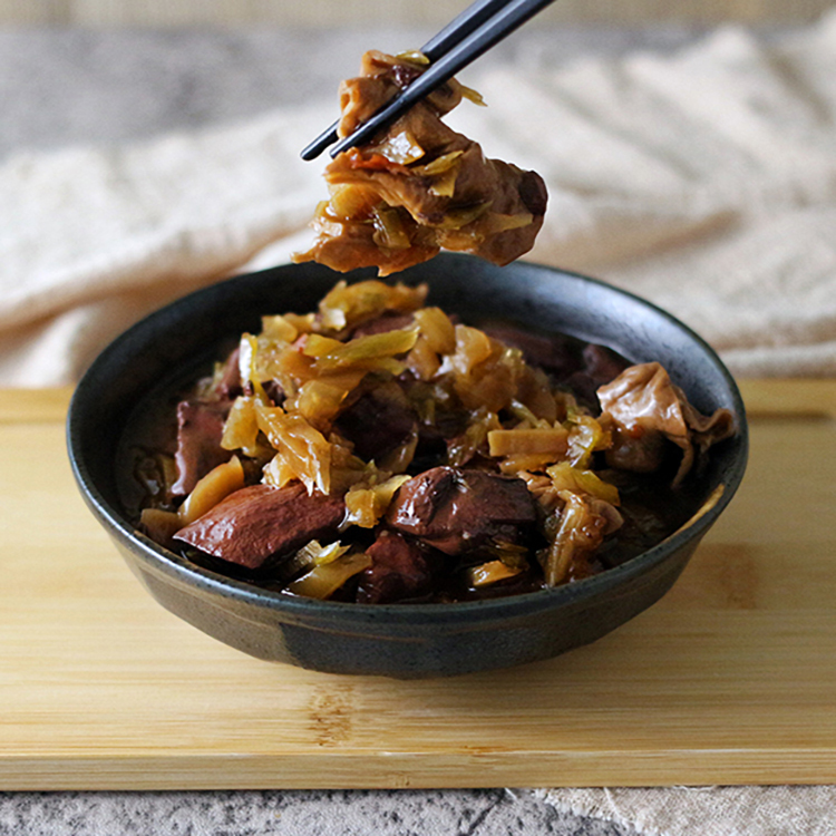 加酸菜、蔥、辣椒、蒜、薑...燉煮而成