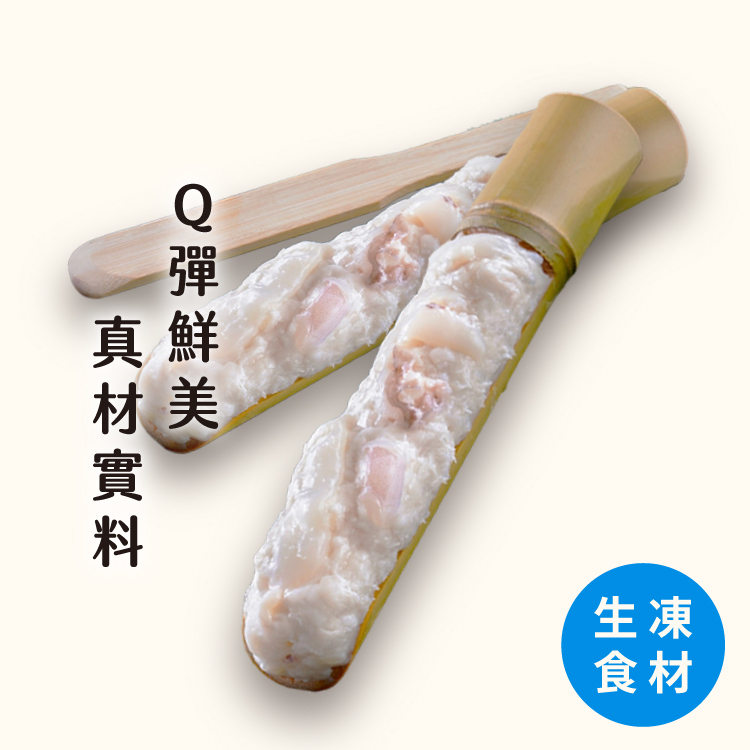 【成份】花枝肉、旗魚肉、豬脂(原產地台灣)、馬鈴薯澱粉、糖、水、蒜頭、鹽、白胡椒粉